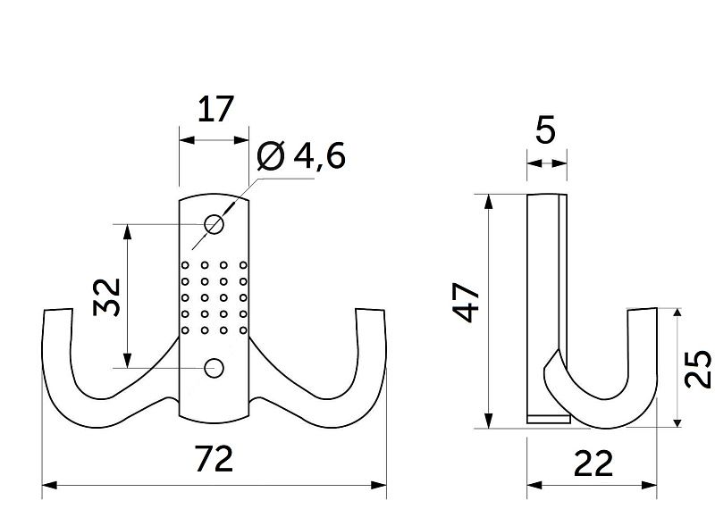 Крючок меб. двухрожковый мет. WP12 черный GRIDLI 66270, описание: