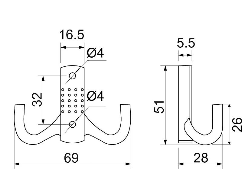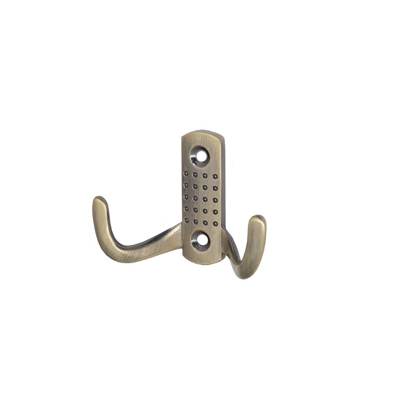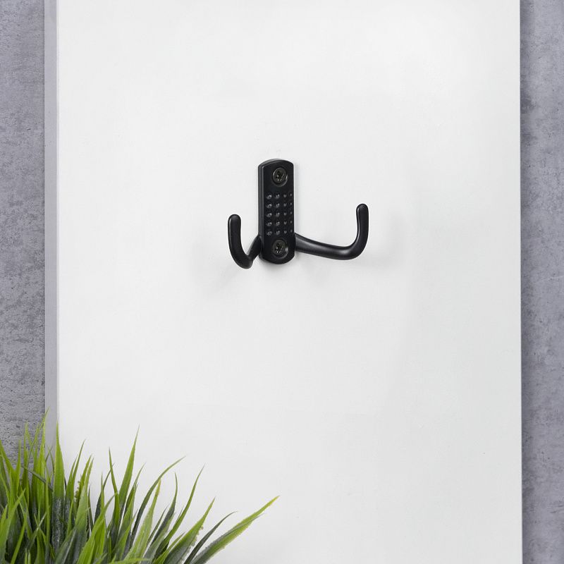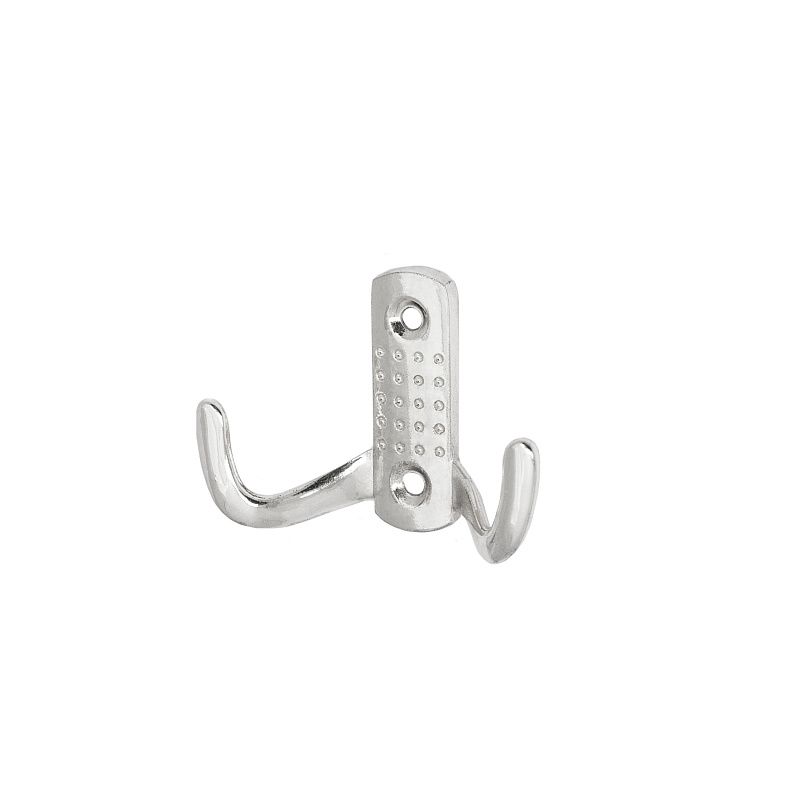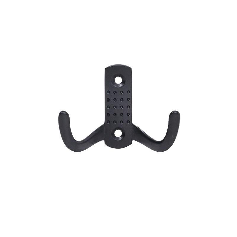 Металлический двухрожковый крючок. Подходит для использования в ванных и гардеробных комнатах. Материал - цинк-алюминий. Цвет - черный. Крепление к поверхности с помощью шурупов. В комплекте: 2 шурупа 4*18.Технические характеристики: