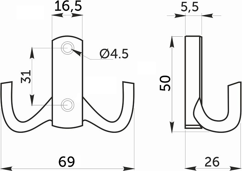 Крючок двухрожковый классическийТехнические характеристики: