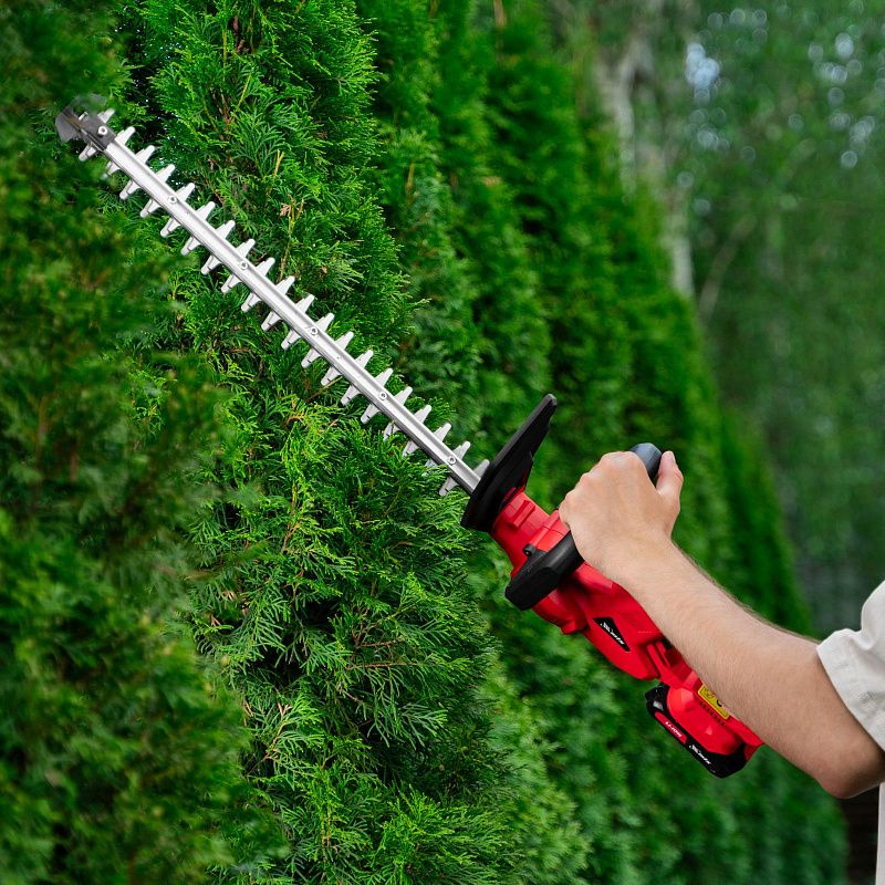 Аккумуляторный кусторез MTX HT-510 59441 с ножом длиной 510 мм предназначен для стрижки кустарника и обрезки веток толщиной до 16 мм. Частота хода лезвий составляет 1400 ход/мин, что позволяет эффективно решать поставленные задачи. Аккумулятор Li-Ion 20 В емкостью 2 А·ч допускает подзарядку без потери емкости и обеспечивает длительную работу. Кусторез пригодится для выполнения работ в саду и на дачном участке.