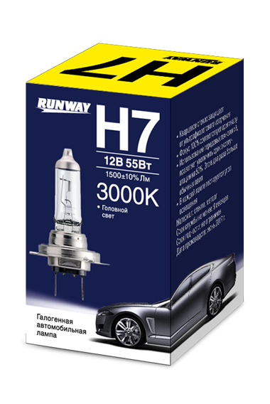 Лампа автомобильная галогенная 12V 55W Runway RW-H7, описание: