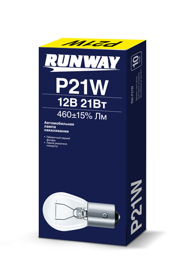 Лампа накаливания 12В 21Вт Runway RW-P21W, описание: