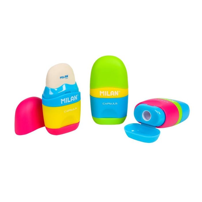 Ластик-точилка Milan "Capsule Mix", 1 отверстие, с контейнером