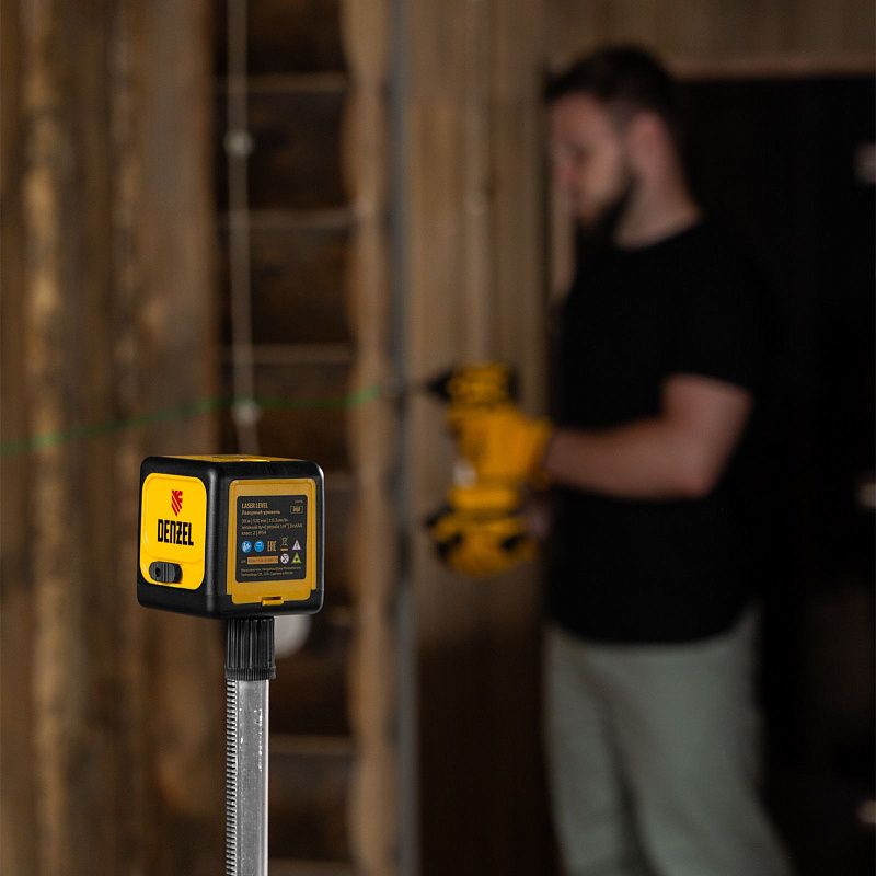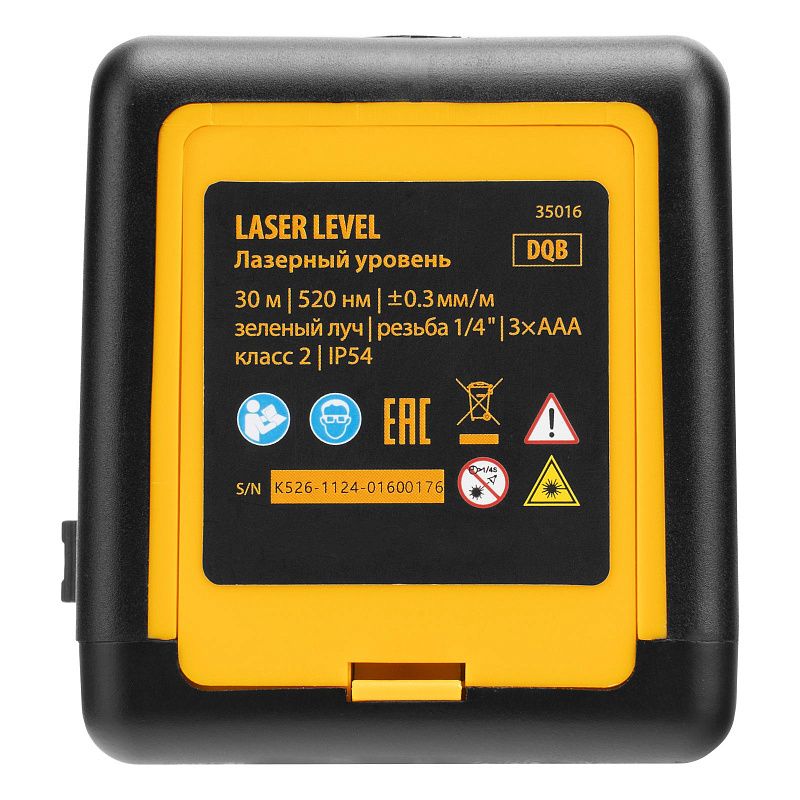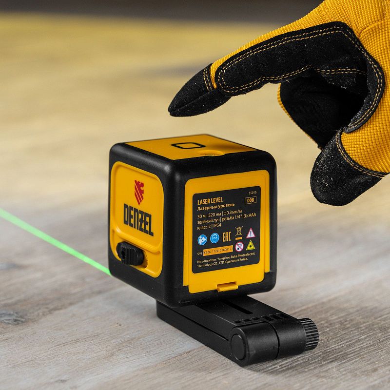 Лазерный уровень DQB, 30 м, зеленый луч, батарейки, сумка Denzel 35016, технические характеристики: