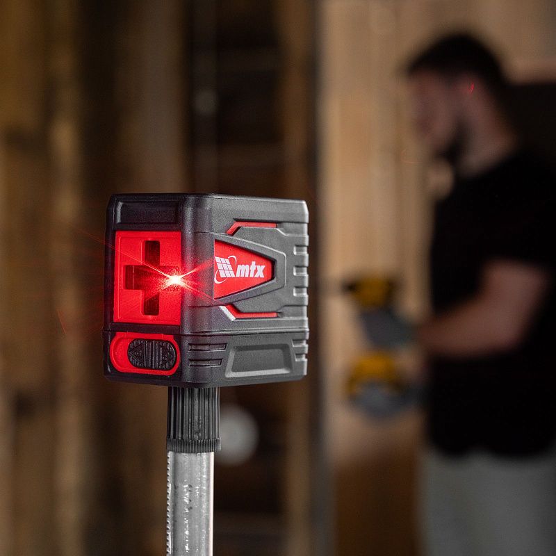 Лазерный уровень MTX QBC RED Basic SET 35010 с резьбой 1/4″ работает от батареек AA и проецирует горизонтальную и вертикальную линии на расстояние до 10 м при помощи красных лучей длиной 635 нм. Предназначен для проведения разметки поверхностей и выравнивания предметов при проведении строительных и ремонтных работ. С его помощью можно выполнить внутреннюю отделку помещений, смонтировать подвесные потолки, установить розетки и выключатели, шкафы и стеллажи, повесить полки и картины и т.д. Погрешность составляет ±0,3 мм/м, что обеспечивает высокую точность разметки. Прибор можно использовать в помещении и на улице.