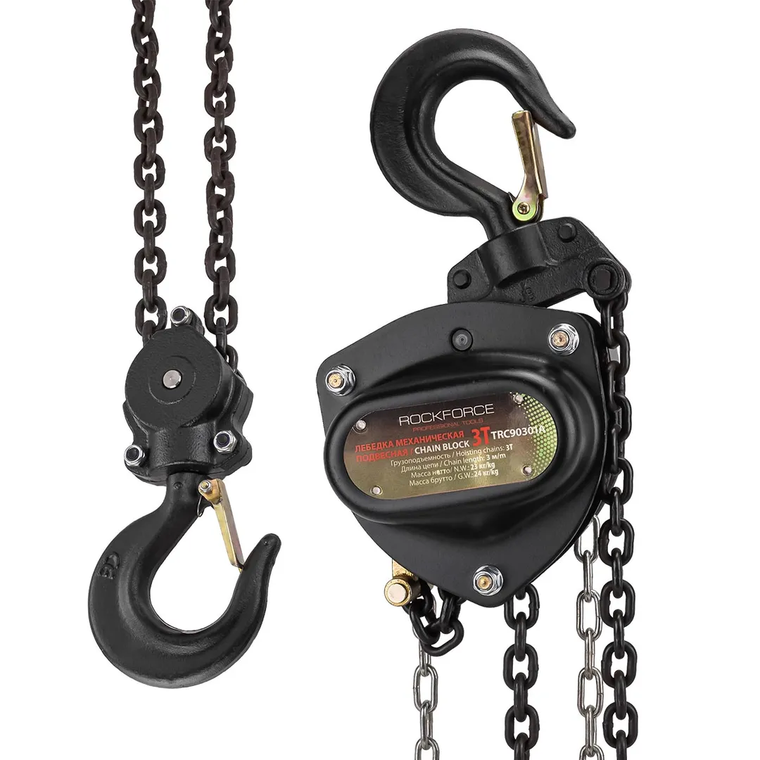 Таль механическая подвесная с лепестковым механизмом фиксации цепи натяжения, 3 т, длина цепи - 3 м RockForce RF-TRC90301A