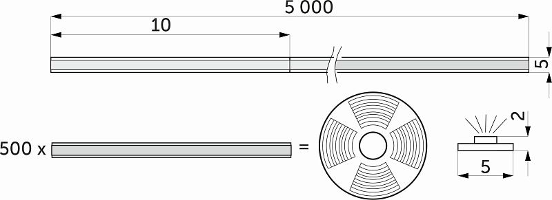 COB лента, количество диодов 400д/м, напряжение 12В, степень защиты IP20, мощность 12W/m, ширина 5 мм, теплый белый (3000K), CRI>90, 1000 Lm, узкая - 5м.Технические характеристики: