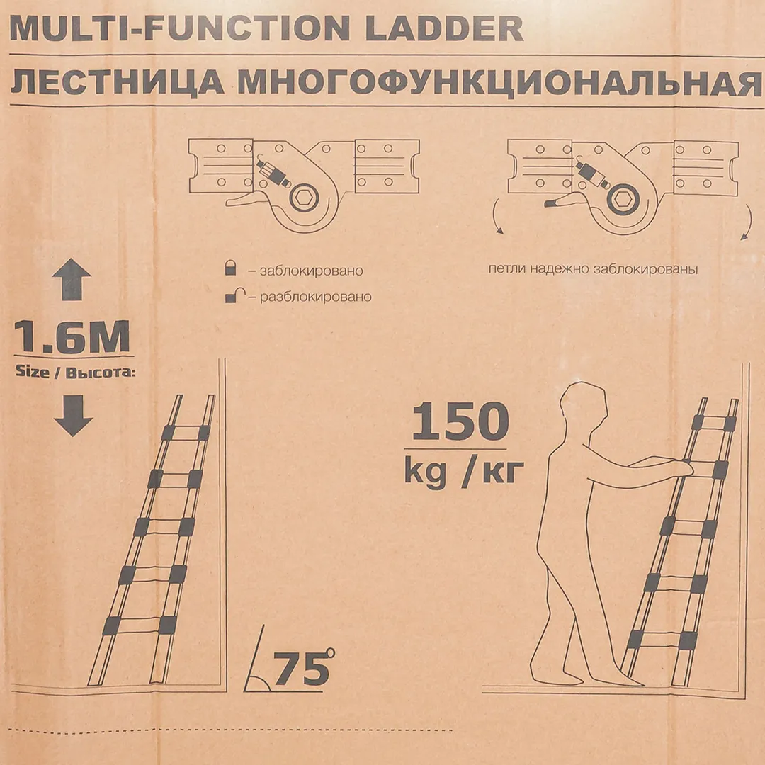 Лестница-стремянка телескопическая алюм. бытовая 1.6+1.6 м, 5+5 ступ. ISMA ISMA-UP160-M
