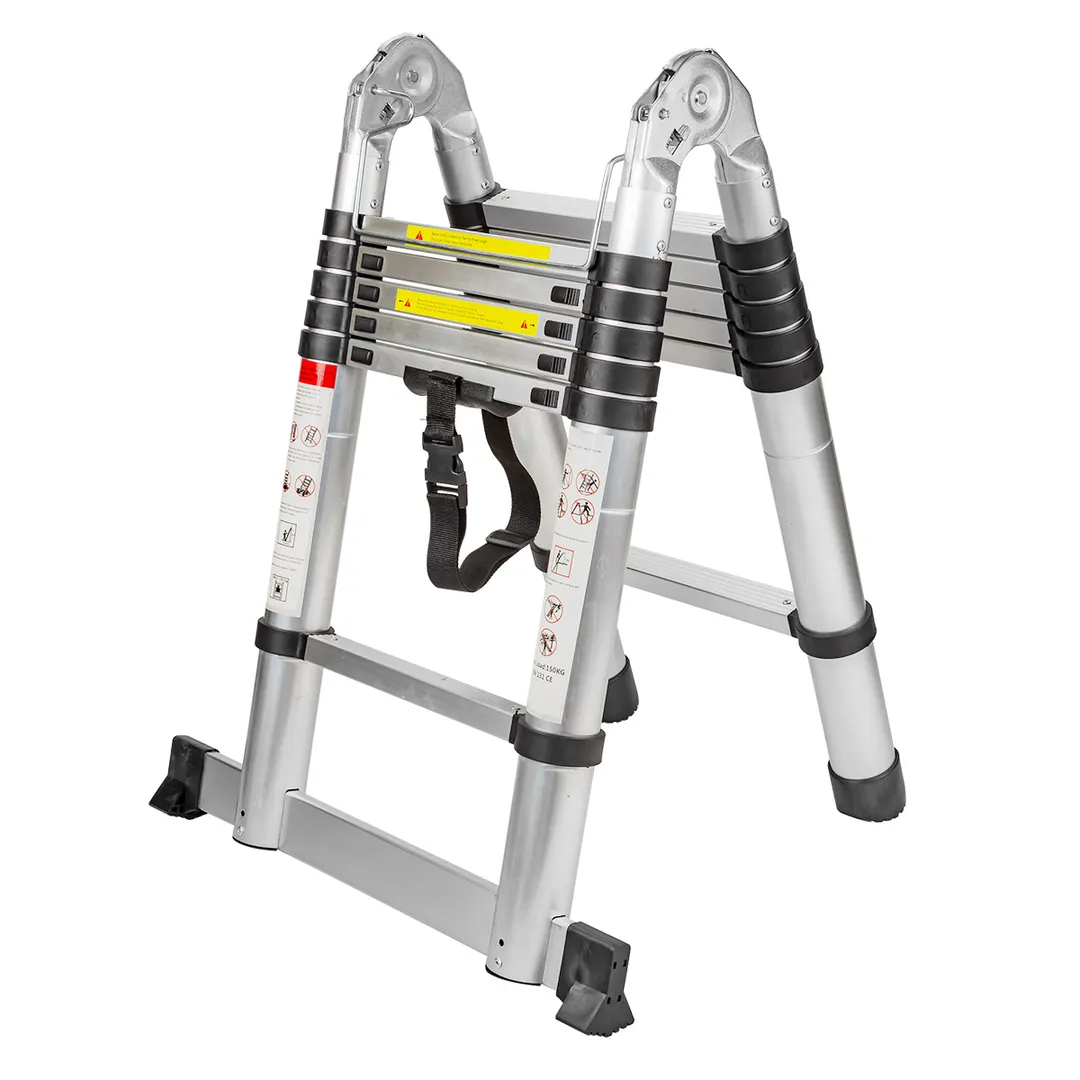 Лестница трансформер телескопическая двухсекционная алюминиевая с максимальной нагрузкой 150 кг. Может быть использована как приставная лестница (3,8 метра на 12 ступенек) и как лестница стремянка (1,9 метра 6 ступенек + 1,9 метра 6 ступенек). В основе лежит уникальный шарнирный механизм, который в значительной степени способствует быстрой и надежной трансформации, а также повышенной безопасности. Благодаря такому механизму вы легко застопорите лестницу в нужном положении. Соответствует всем необходимым европейским нормам безопасности (Certificate EN 131 Norm), имеет коррозионную стойкость, многофункциональна и с повышенной устойчивостью благодаря широким опорным перекладинам. У лестницы противоскользящие двухкомпонентные опорные заглушки для лучшего сцепления с поверхностью и компактные размеры в сложенном виде (удобна при транспортировке и хранении). Применяется для проведения ремонтных, строительных и монтажных работ любой сложности.Преимущества работы с нами