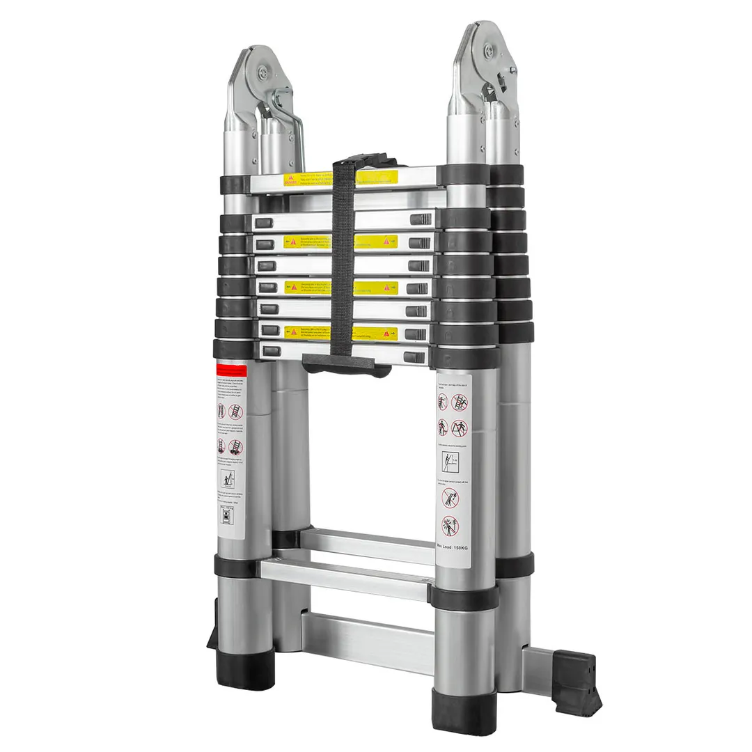 Лестница трансформер телескопическая двухсекционная алюминиевая с максимальной нагрузкой 150 кг. Может быть использована как приставная лестница (5,6 метра на 18 ступенек) и как лестница стремянка (2,8 метра 9 ступенек + 2,8 метра 9 ступенек). В основе лежит уникальный шарнирный механизм, который в значительной степени способствует быстрой и надежной трансформации, а также повышенной безопасности. Благодаря такому механизму вы легко застопорите лестницу в нужном положении. Соответствует всем необходимым европейским нормам безопасности (Certificate EN 131 Norm), имеет коррозионную стойкость, многофункциональна и с повышенной устойчивостью благодаря широким опорным перекладинам. У лестницы противоскользящие двухкомпонентные опорные заглушки для лучшего сцепления с поверхностью и компактные размеры в сложенном виде (удобна при транспортировке и хранении). Применяется для проведения ремонтных, строительных и монтажных работ любой сложности.Преимущества работы с нами