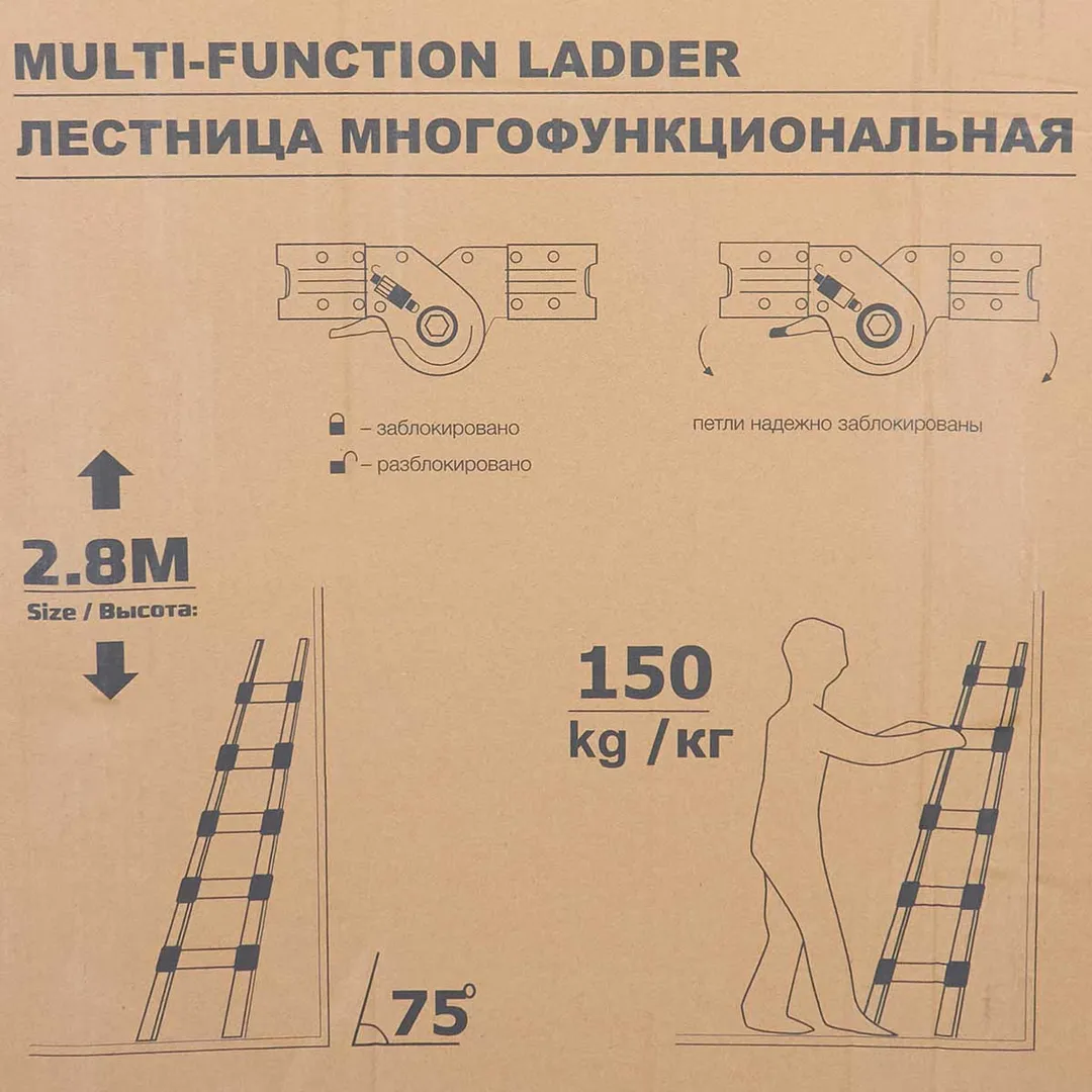 Лестница-стремянка телескопическая алюм. бытовая 2.8+2.8 м, 9+9 ступ. ISMA ISMA-UP280-M