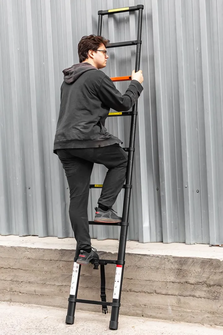 Лестница телескопическая приставная предназначена для ремонтных, строительных и монтажных работ любой сложности. Алюминиевая лестница отличается высокой прочностью и выдерживает вес до 150 кг. Имеет максимальную высоту 2,6 м и состоит из 9 ступенек. Складная и неразборная конструкция делает ее удобной в использовании. Лестница-стремянка оснащена противоскользящими накладками на ножках, что обеспечивает устойчивость и безопасность во время работы. Лестница также оснащена крепежным ремнем, который позволяет фиксировать ступени в сложенном виде, чтобы избежать возможных повреждений во время транспортировки.Преимущества работы с нами