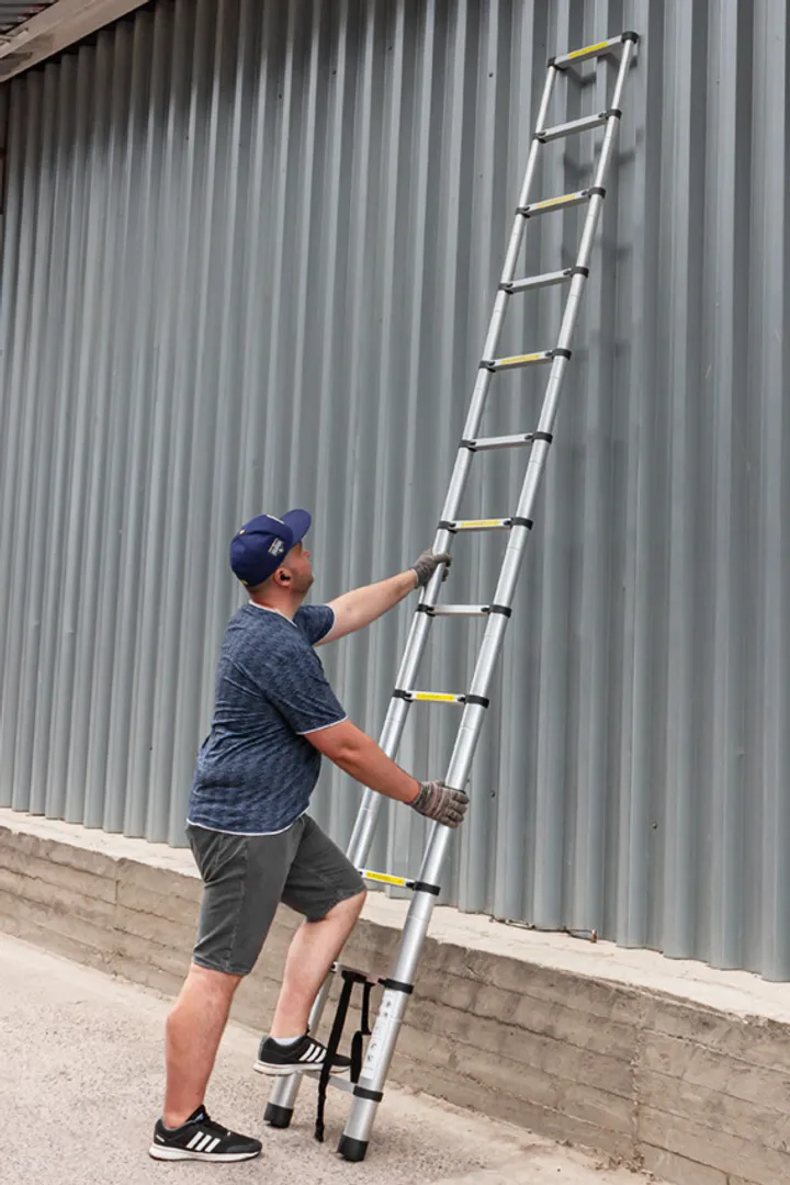 Лестница 3,8 м телескопическая приставная предназначена для ремонтных, строительных и монтажных работ любой сложности. Алюминиевая лестница отличается высокой прочностью и выдерживает вес до 150 кг. Имеет максимальную высоту 3,8 м и состоит из 13 ступенек. Складная и неразборная конструкция делает ее удобной в использовании. Лестница-стремянка оснащена противоскользящими накладками на ножках, что обеспечивает устойчивость и безопасность во время работы. Лестница также оснащена крепежным ремнем, который позволяет фиксировать ступени в сложенном виде, чтобы избежать возможных повреждений во время транспортировки.Преимущества работы с нами