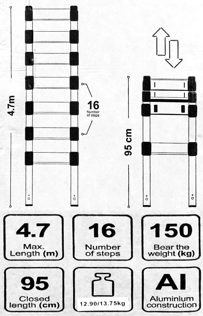 Лестница телескопическая алюм. бытовая 4.7 м 16 ступ. Scheppach Sch-UP470