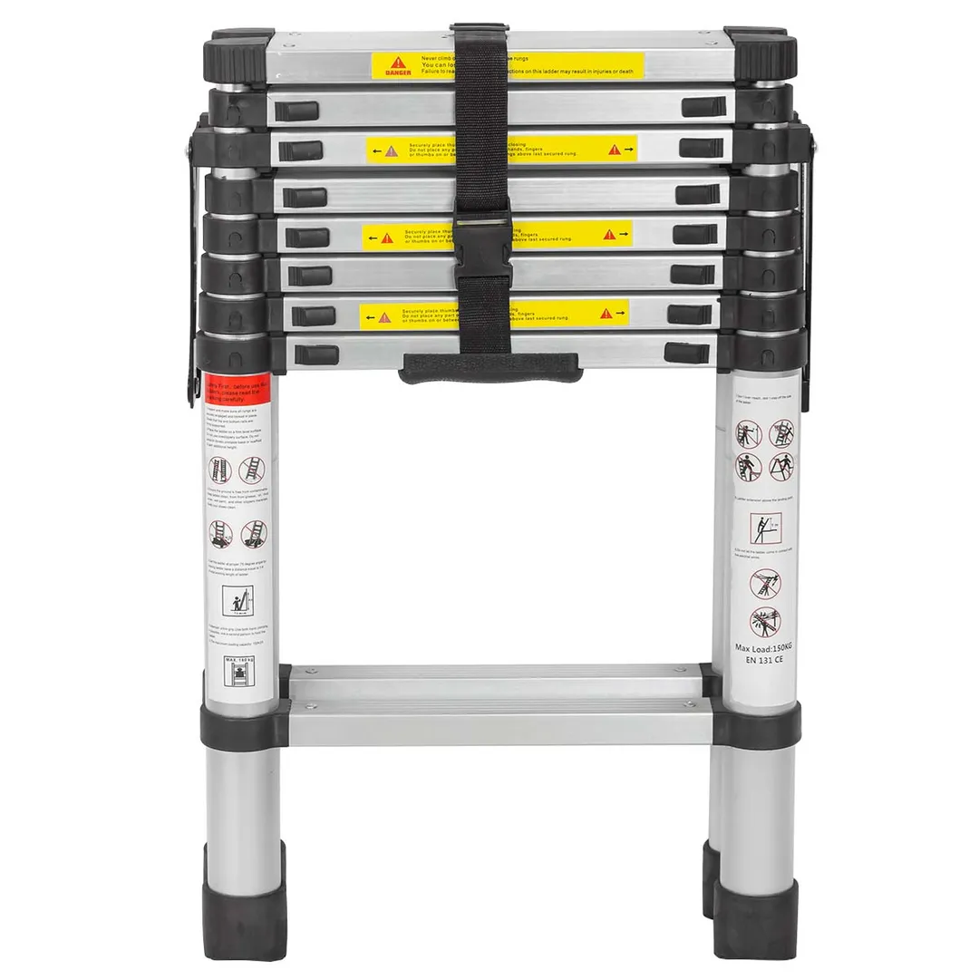 Лестница стремянка телескопическая алюминиевая, максимальная нагрузка: 150 кг. Состоит из двух секций: максимальная высота одной секции 2.6 м на 6 ступенек. Конструкция: лестница трансформер, складная, неразборная. Двухстороннее восхождение с возможностью регулировки высоты подъема. Противоскользящие накладки на ножках обеспечивают устойчивость и безопасность. Оборудована крепежным ремнем для фиксации ступенек. Оснащена фиксатором для защиты от складывания при работе. Изготовлена из алюминиевого сплава высокой прочности, обладающего коррозийной стойкостью. Применяется для проведения ремонтных, строительных и монтажных работ любой сложности. Компактные размеры в сложенном виде (для удобства хранения и транспортировки). Надежная конструкция в сочетании с высокопрочным металлом.Преимущества работы с нами