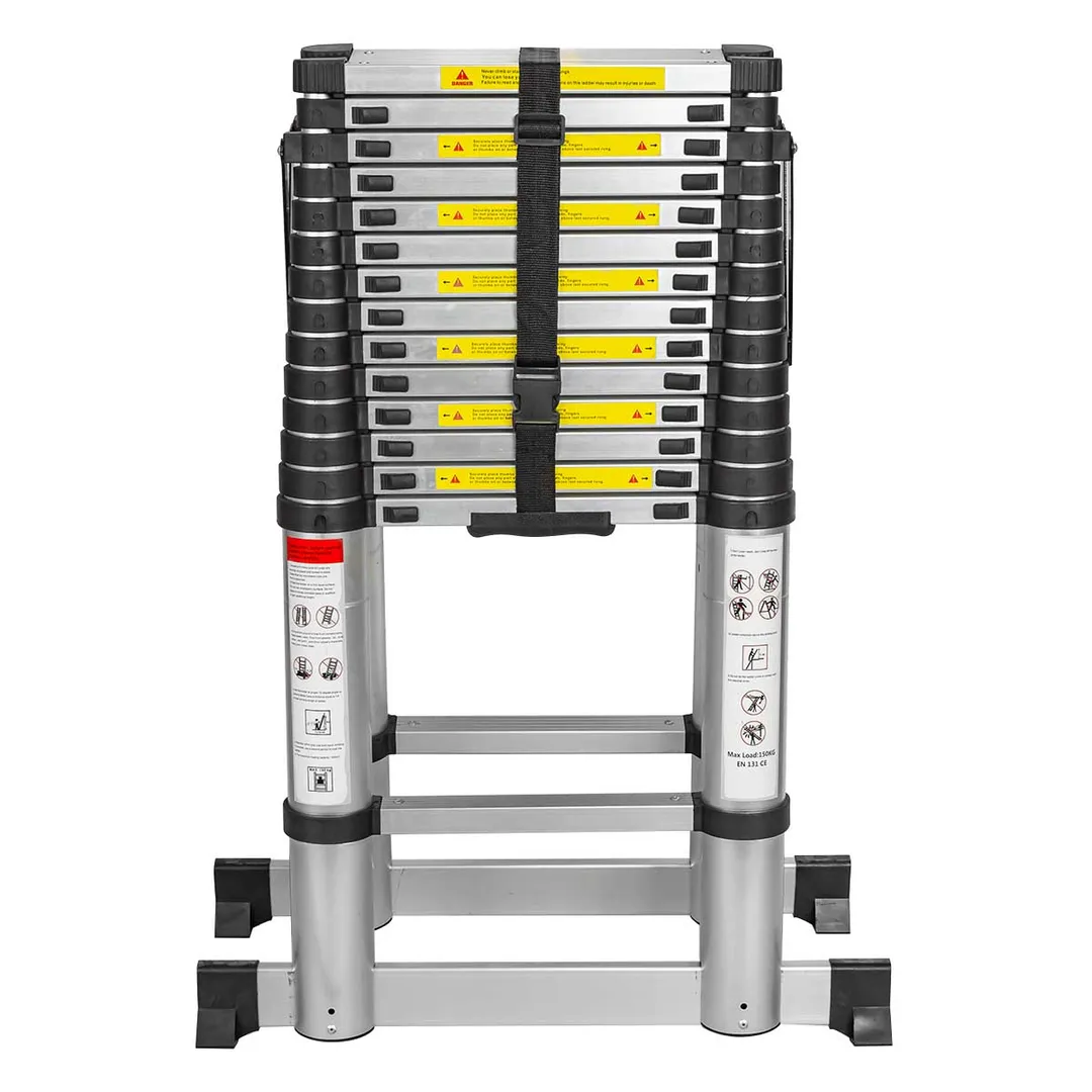 Лестница стремянка телескопическая алюминиевая, максимальная нагрузка: 150 кг. Состоит из двух секций: максимальная высота одной секции 4,4 м на 14 ступенек. Конструкция: лестница трансформер, складная, неразборная. Двухстороннее восхождение с возможностью регулировки высоты подъема. Противоскользящие накладки на ножках обеспечивают устойчивость и безопасность. Оборудована крепежным ремнем для фиксации ступенек. Оснащена фиксатором для защиты от складывания при работе. Изготовлена из алюминиевого сплава высокой прочности, обладающего коррозийной стойкостью. Применяется для проведения ремонтных, строительных и монтажных работ любой сложности. Компактные размеры в сложенном виде (для удобства хранения и транспортировки). Надежная конструкция в сочетании с высокопрочным металлом.Преимущества работы с нами