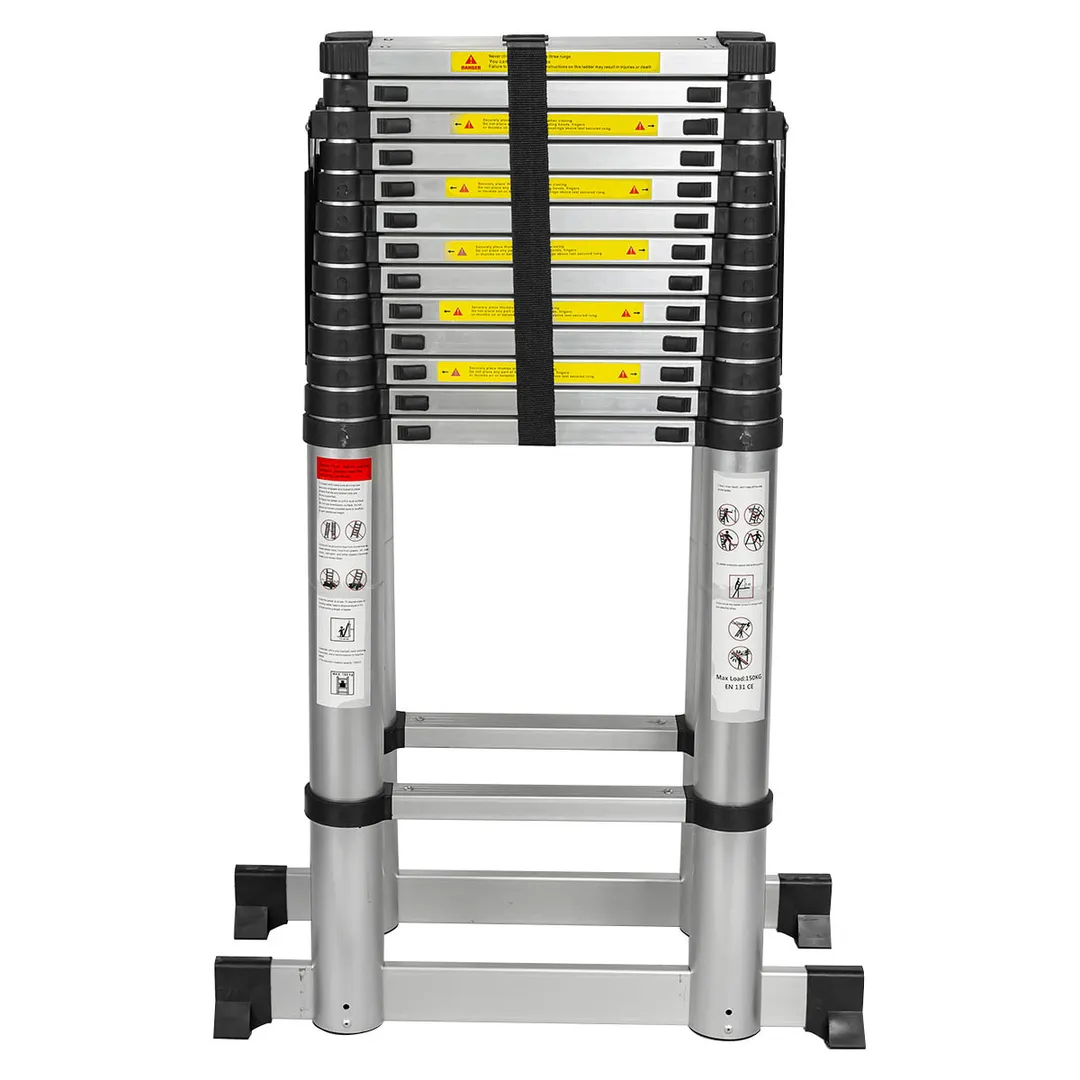 Лестница стремянка телескопическая алюминиевая, максимальная нагрузка: 150 кг. Состоит из двух секций: максимальная высота одной секции 5,4 м на 13 ступенек. Конструкция: лестница трансформер, складная, неразборная. Двухстороннее восхождение с возможностью регулировки высоты подъема. Противоскользящие накладки на ножках обеспечивают устойчивость и безопасность. Оборудована крепежным ремнем для фиксации ступенек. Оснащена фиксатором для защиты от складывания при работе. Изготовлена из алюминиевого сплава высокой прочности, обладающего коррозийной стойкостью. Применяется для проведения ремонтных, строительных и монтажных работ любой сложности. Компактные размеры в сложенном виде (для удобства хранения и транспортировки). Надежная конструкция в сочетании с высокопрочным металлом.Преимущества работы с нами
