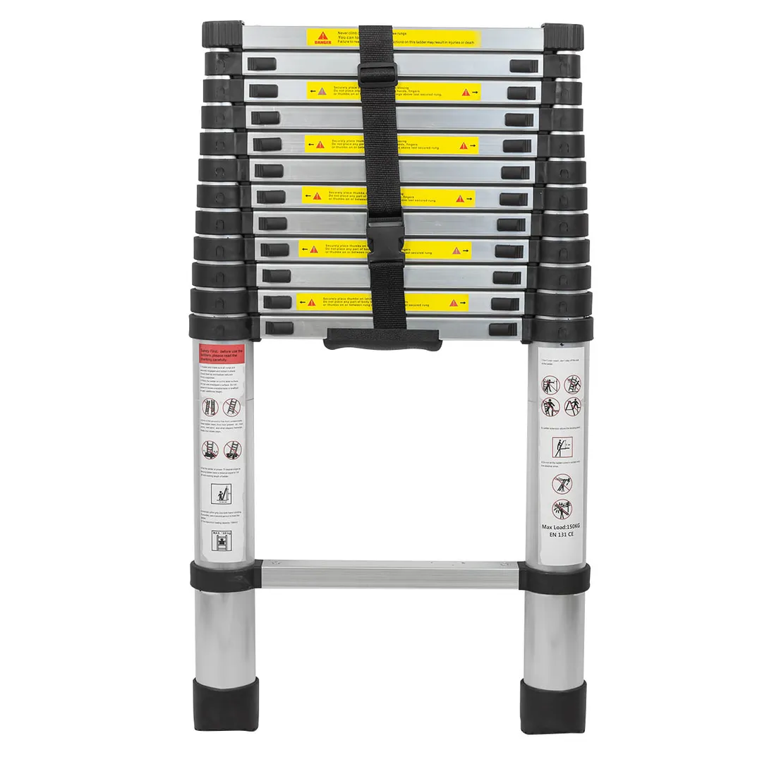 Лестница телескопическая приставная предназначена для ремонтных, строительных и монтажных работ любой сложности. Алюминиевая лестница отличается высокой прочностью и выдерживает вес до 150 кг. Имеет максимальную высоту 3.8 м и состоит из 12 ступенек. Складная и неразборная конструкция делает ее удобной в использовании. Лестница-стремянка оснащена противоскользящими накладками на ножках, что обеспечивает устойчивость и безопасность во время работы. Лестница также оснащена крепежным ремнем, который позволяет фиксировать ступени в сложенном виде, чтобы избежать возможных повреждений во время транспортировки.Преимущества работы с нами