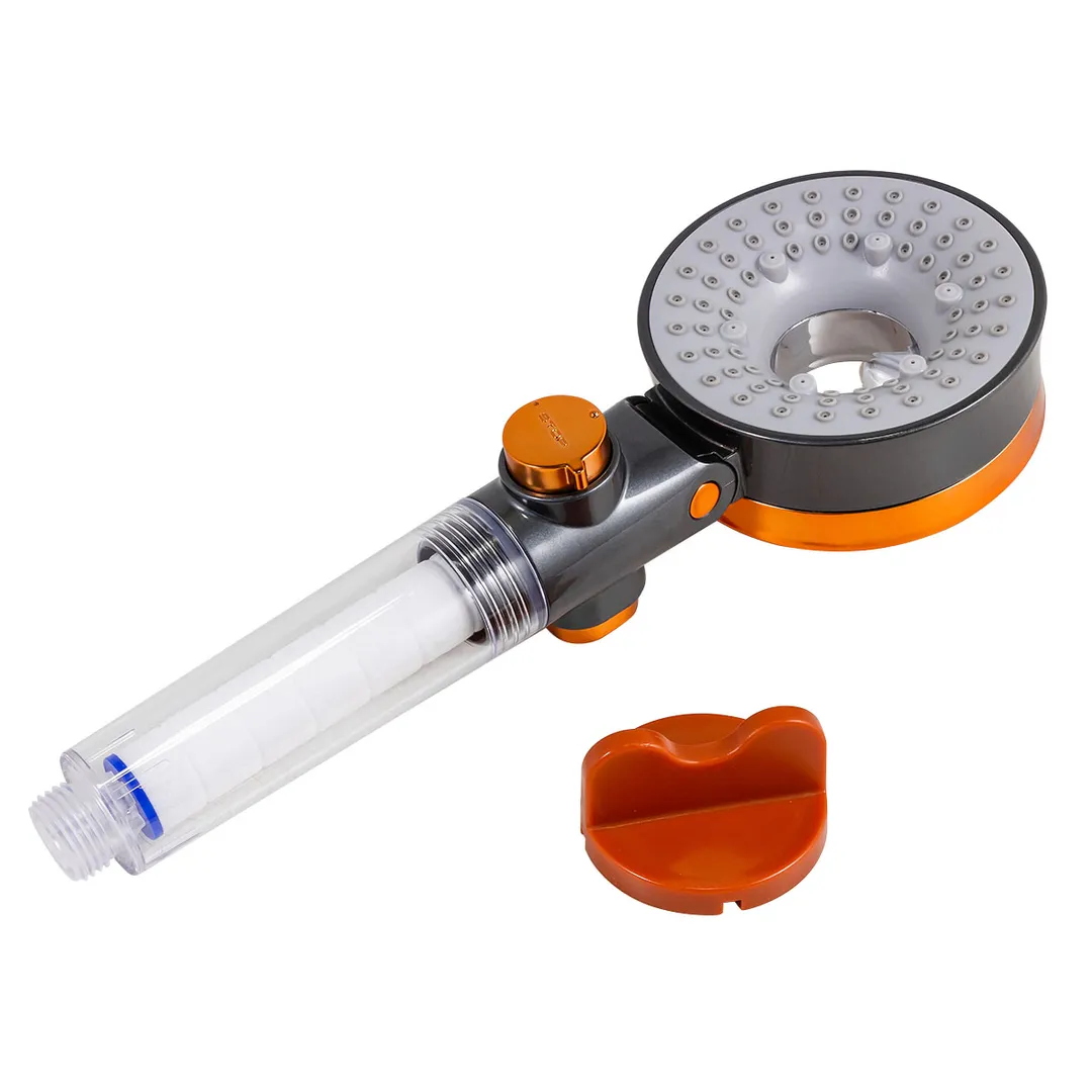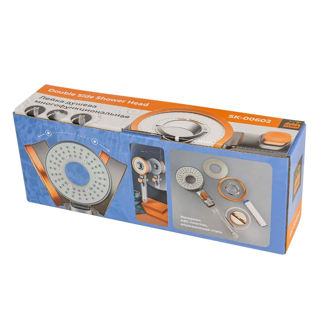Лейка душевая двухсторонняя шарнирная с кнопкой подачи воды, АБС-пластик/нерж.сталь, L-26см, ø-9см, 0-80°С, 3 режима, очистка от хлора ISMA ISMA-SK-00602