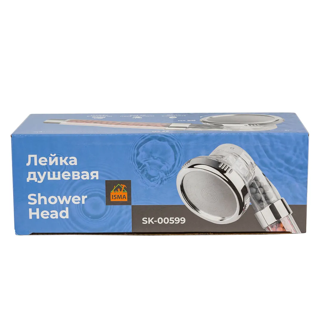 Лейка душевая, поликарбонат/нерж.сталь, L-22см, ø-8см, фильтрация-ионная, 0-80°С, 3 режима:дождь/SPA/комплексный, экон. воды до 30% ISMA ISMA-SK-00599