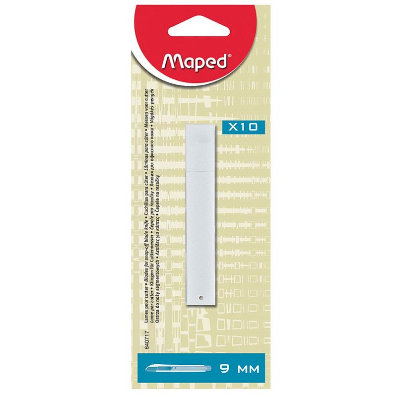 Стальные лезвия Maped для канцелярских ножей в пластиковом футляре. Малого и большого размера (ширина - 9 мм и 18 мм). Лезвия поделены на секции. При обламывании уже затупленного края, нож вновь становится острым.