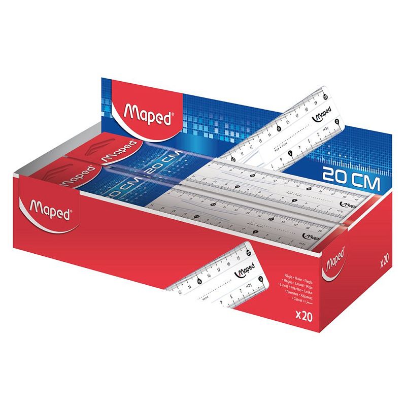Линейка "Кристалл" от Maped. Деления нанесены стойкими ультрафиолетовыми чернилами. Визуально выделены каждые 5 см. Отлично подходит для использования как на работе, так и во время учебы. Есть несколько вариантов длины.