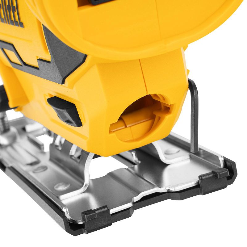 - Полная комплектация — лобзик поставляется с аккумулятором, зарядным устройством, адаптером для пылесоса, шестигранным ключом, параллельной направляющей и 2 полотнами: по дереву и по металлу.