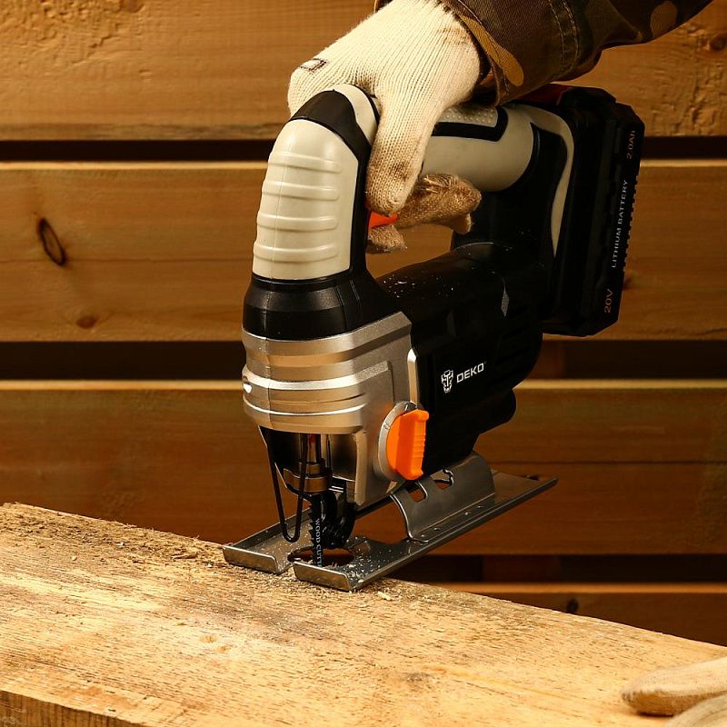 - Лобзик аккумуляторный DEKO DKJS20 20В 1*2.0Ач используется для распиливания дерева, металла, пластика, резины при отделочных или ремонтных работах.