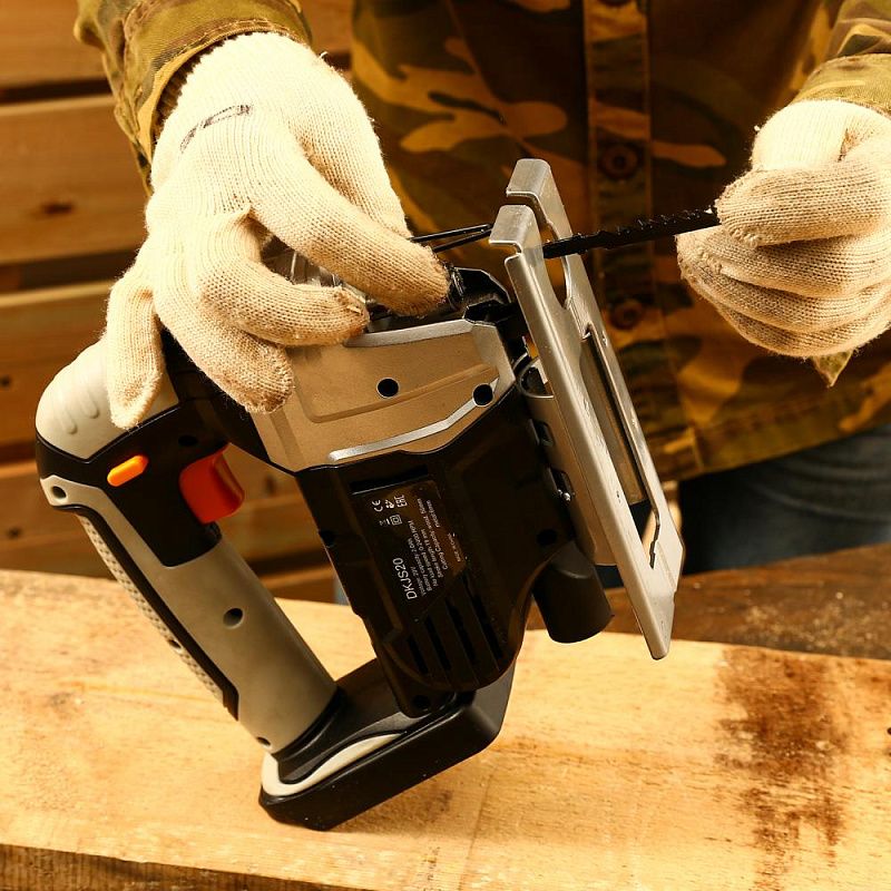 - Наличие бесключевого патрона значительно облегчает замену полотна.