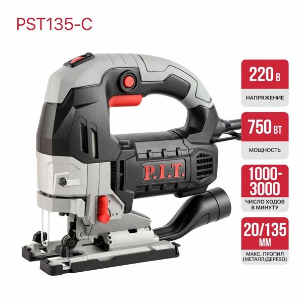Лобзик электрич., 750Вт, 135 мм, 1000-3000ход/мин, БЗП, маятник, ход 26мм, обдув PIT PST135-C