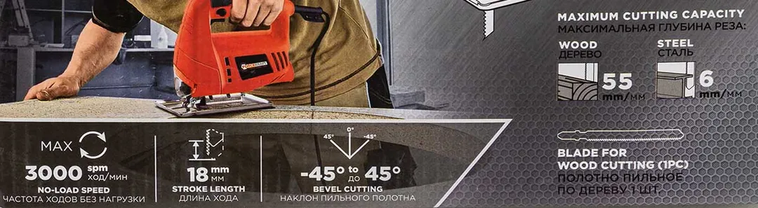 Лобзик электрический 230V, 350WT, 3000ход/мин, длина хода 18 мм ForceKraft FK-M1Q-A-JS01