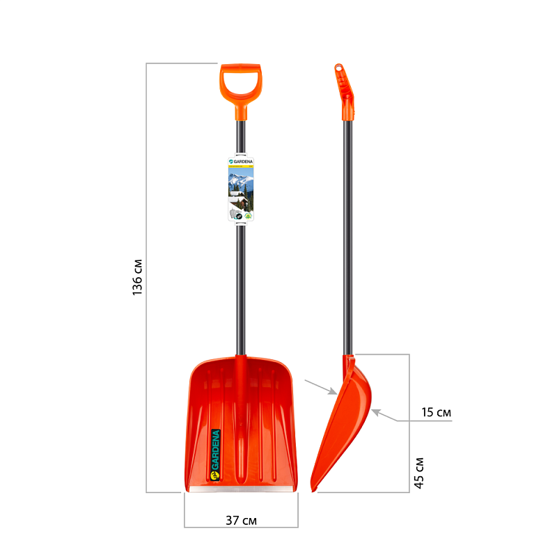 Лопата снеговая val GARDENA, 370x400, морозостойкий полипропилен, ребра жесткости, стальной черенок, D-образная рукоятка, оранжевый