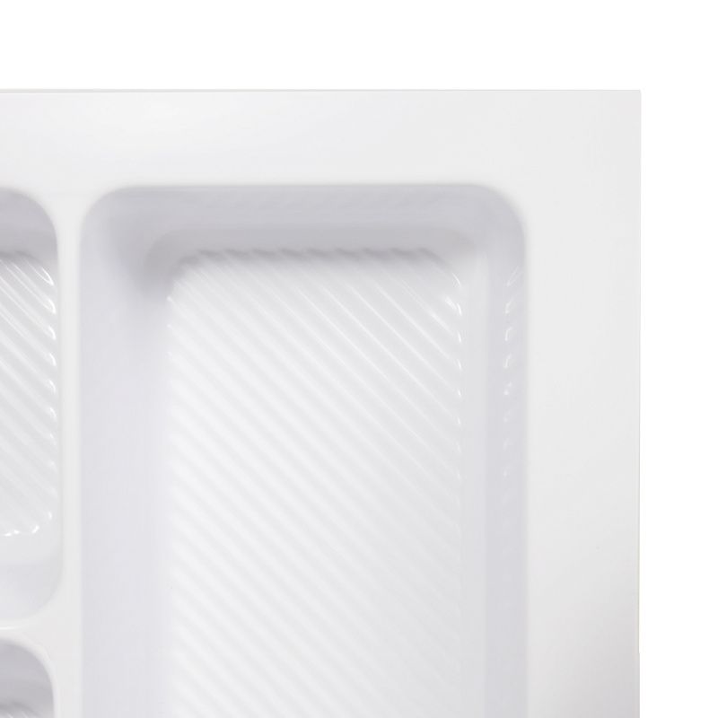 Лотки для столовых приборов серии LINER новое и стильное решение для организации хранения столовых приборов на кухне: - текстура “штрих” вполуматовом беломцвете, - плотный эластичный пластик для долговечной службы, - возможна установка в ящик глубиной от 390 мм до 430 мм за счет возможности подрезки.Технические характеристики: