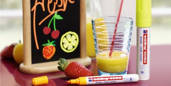 Маркер на меловой основе предназначен для нанесения информации на любую гладкую поверхность – на стекло, кафель, керамику, пластик. Можно использовать для нанесения надписей и рисунков на окнах и витринах, а также для письма на меловых школьных досках. С любой гладкой поверхности хорошо стирается сухой губкой, с шероховатой поверхности удаляется водой.