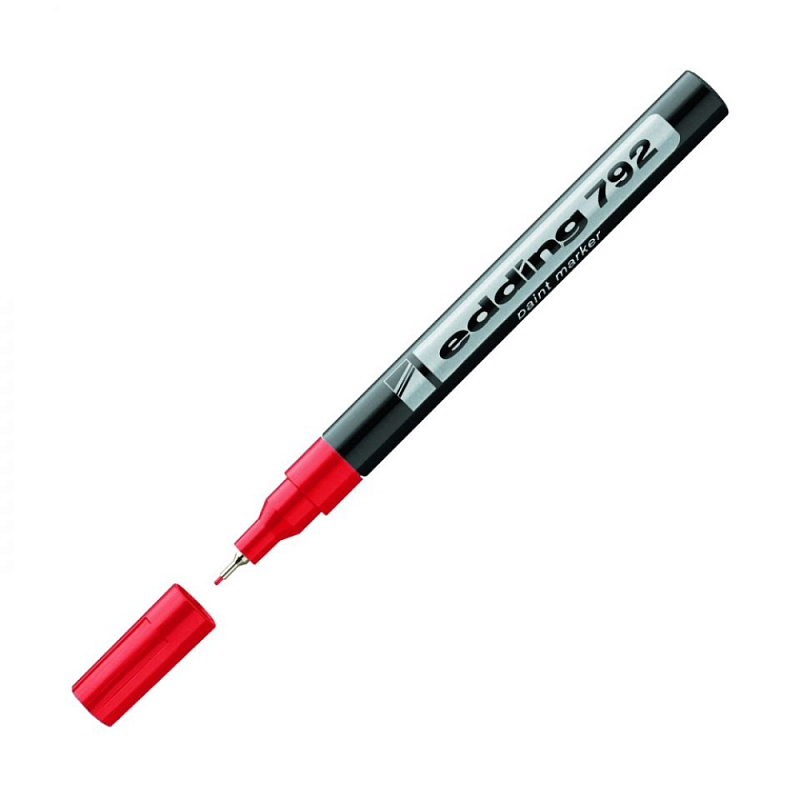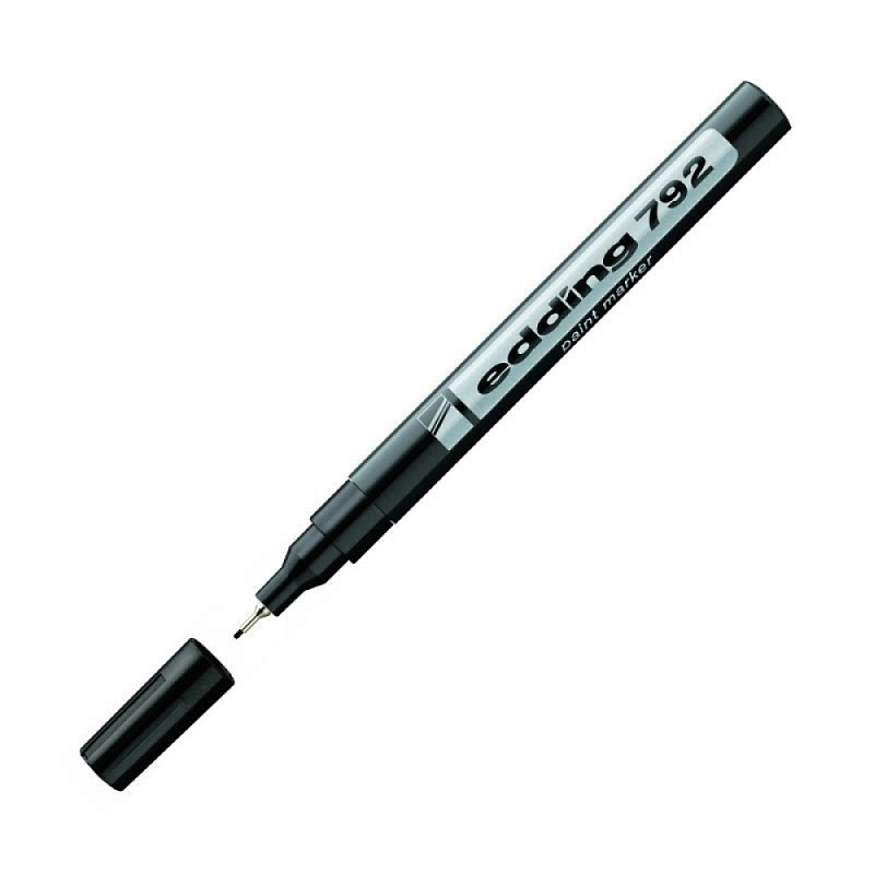 Лаковый маркер Edding 792 с круглым наконечником в металлической оправе. Сверхпокрывающая способность в маркировке любых материалов, например, металла, пластика, стекла, дерева. Идеален для использования на темных и прозрачных поверхностях. Отличный помощник в литейном деле, при сварке, ковке, в прочих видах работ по металлу, а также в машиностроении. Надписи выдерживают воздействие температуры до 400 °С. Чернила устойчивы к изопропанолу, этанолу и машинному маслу.