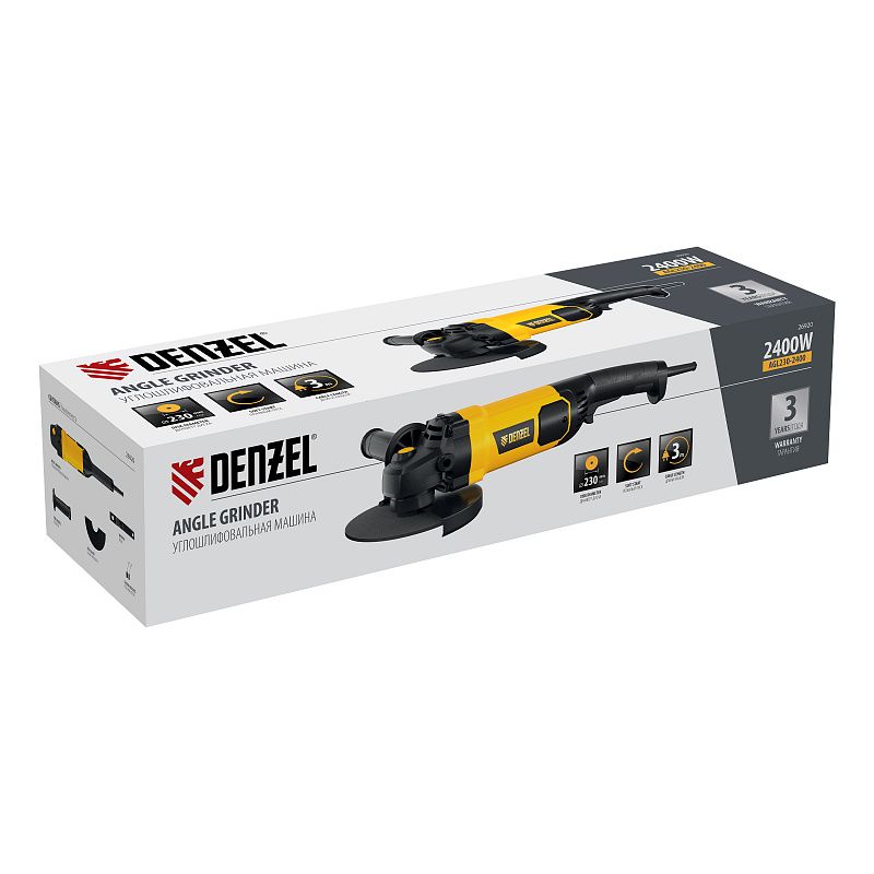 Углошлифовальная машина AGL230-2400, 2400 Вт, 230 мм, 6600 об/мин Denzel 26920, описание: