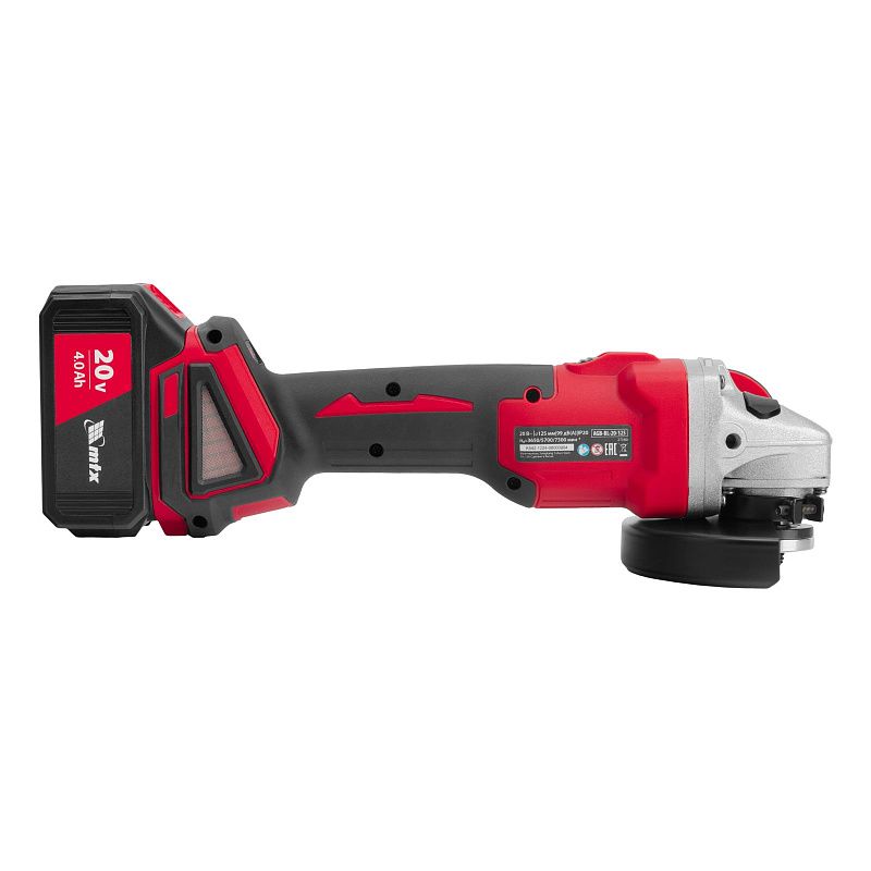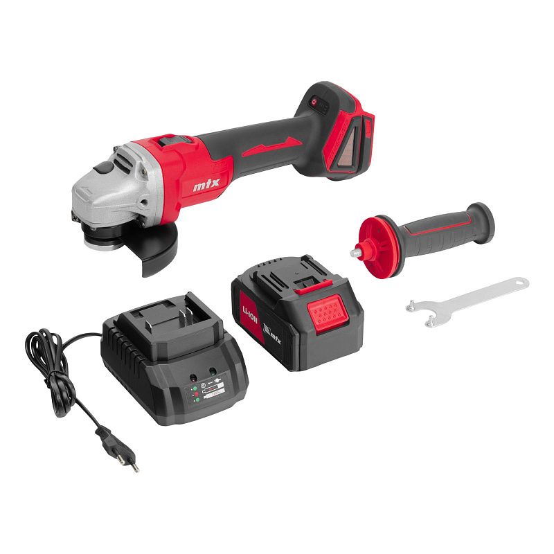 Аккумуляторная угловая шлифовальная машина MTX AGB-BL-20-125 27080 с бесщеточным двигателем питается от батареи Li-Ion 20 В емкостью 4 А·ч. Предназначена для обработки металла при помощи отрезных, шлифовальных кругов и кордщеток. Также может применяться для обработки камня и бетона. Диаметр совместимой оснастки составляет 125 мм. Мощный и надежный бесщеточный двигатель обеспечивает стабильную работу даже при высоких нагрузках. Углошлифовальная машина (УШМ) рекомендована для бытового использования.