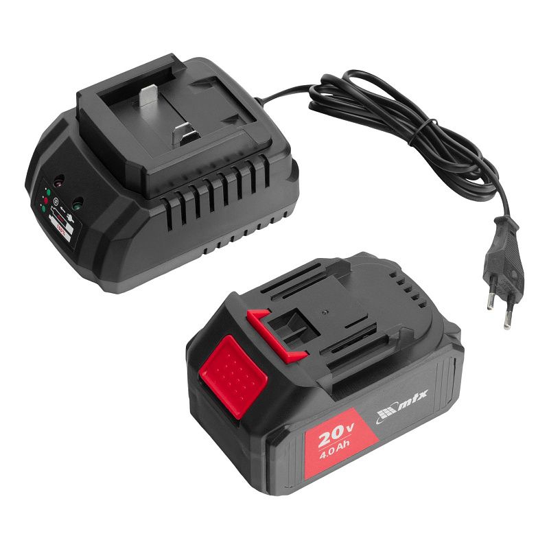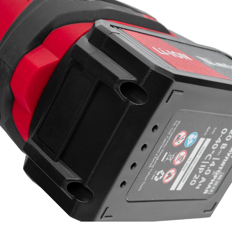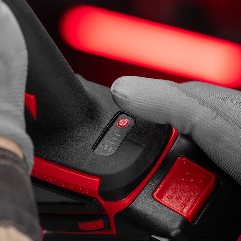 - Полная комплектация — машина поставляется с аккумулятором, зарядным устройством, боковой рукояткой и специальным ключом для фиксации оснастки.