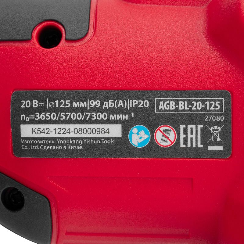 Машина шлифовальная угловая аккумуляторная бесщет. AGB-BL-20-125, Li-Ion, 20 В MTX 27080, описание: