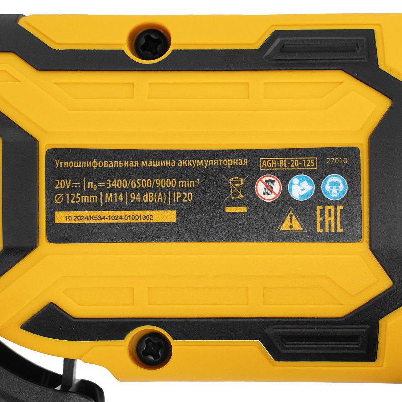 Машина шлифовальная угловая аккумуляторная бесщет. AGH-BL-20-125, Li-Ion, 20 В Denzel 27010, описание: