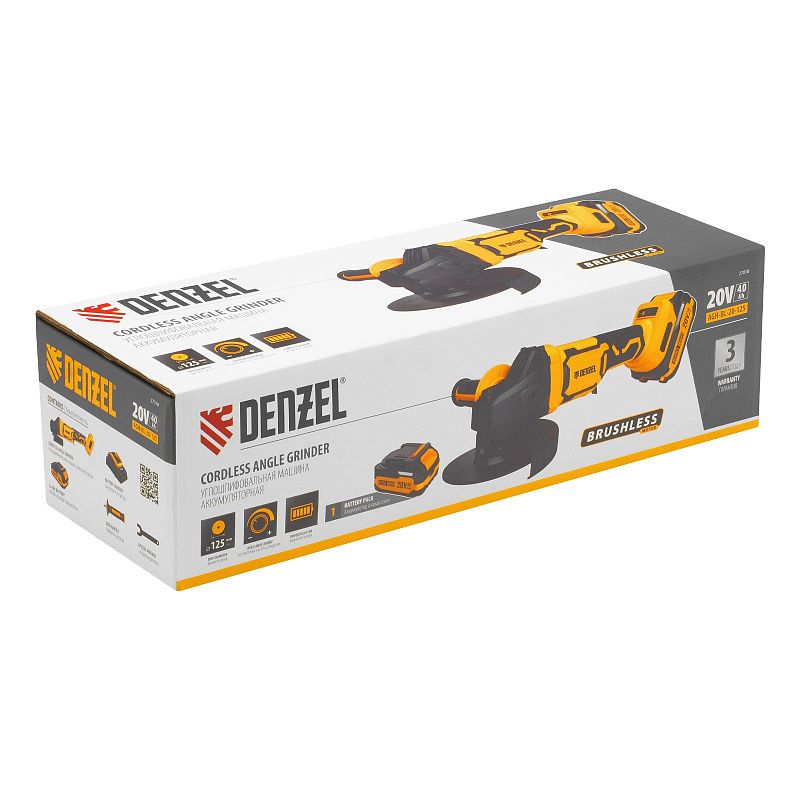 Машина шлифовальная угловая аккумуляторная бесщет. AGH-BL-20-125, Li-Ion, 20 В Denzel 27010