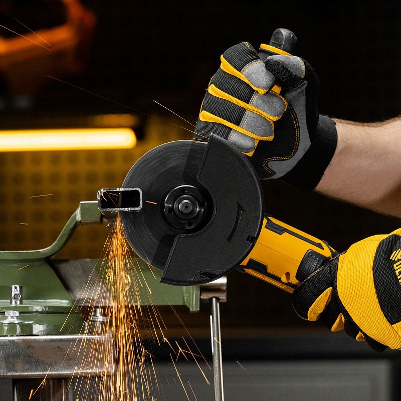- Готовность к использованию — УШМ поставляется с аккумулятором, зарядным устройством, боковой рукояткой и специальным ключом для фиксации оснастки.