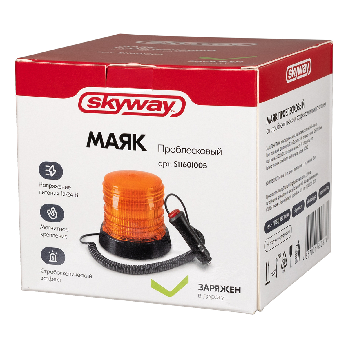 Маяк проблесковый - 04 светодиодный с магнитом со стробоскопическим эффектом и выключателем SKYWAY S11601005, описание: