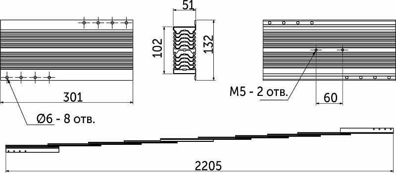 Механизм для раздвижных столов безцарговый мультисекционный 51*300/2200мм AKS 113669, технические характеристики: