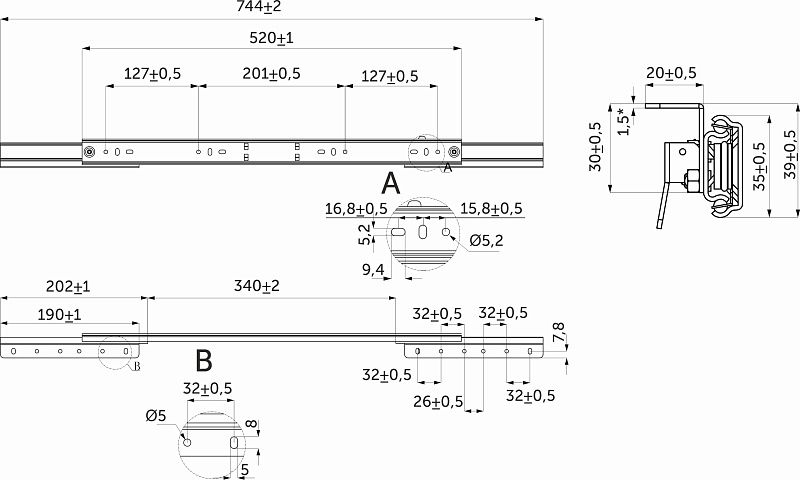 Механизм для раздвижных столов внешний синхронный со стопором L-520 мм AKS 114320, описание: