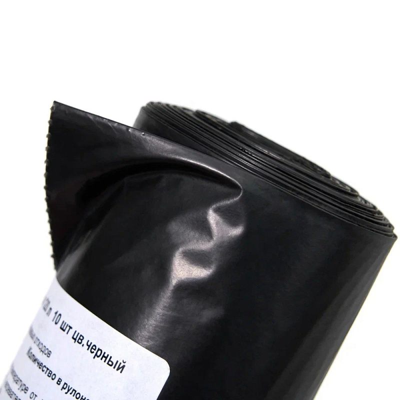 Мешки для мусора 120л, 40мкм, 69х105см, 10шт/рулон, черный