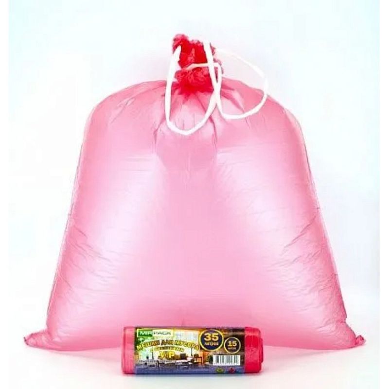 Мешки для мусора, 35л, 15шт/рулон, ПНД, Mirpack Vip, 18 мкм, 50х60см, красный, с завязками