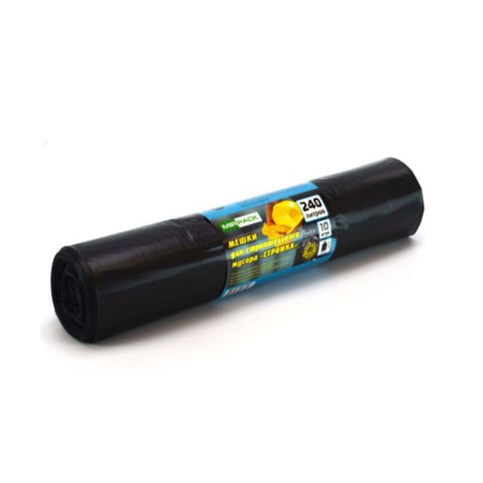 Мешки для мусора "Mirpack Стройка", 70мкм, 240л, 10шт/рулон