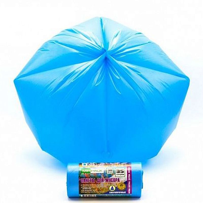 Мешки для мусора ПНД "Mirpack Extra", 12 мкм, 35 л, 30 шт/рулон, синий
