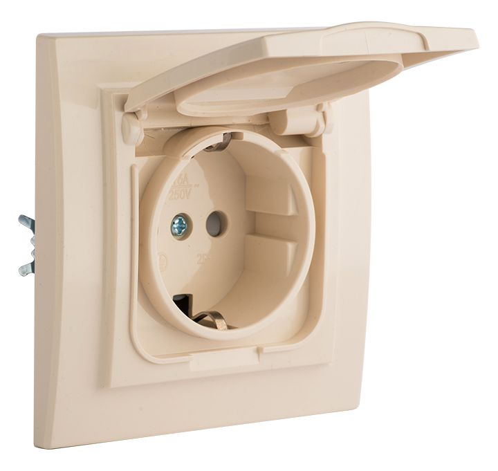 Минск Розетка 1-местная СП с/з с крышкой 16А бежевая с защ, штор, IP44 EKF ERR16-029-200-44